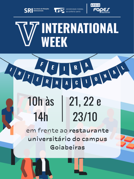 Durante a V Ufes International Week, realizada de 21 a 23 de outubro, das 10h às 14h, aconteceu a Feira Internacional, no gramado em frente ao Restaurante Universitário do campus de Goiabeiras.